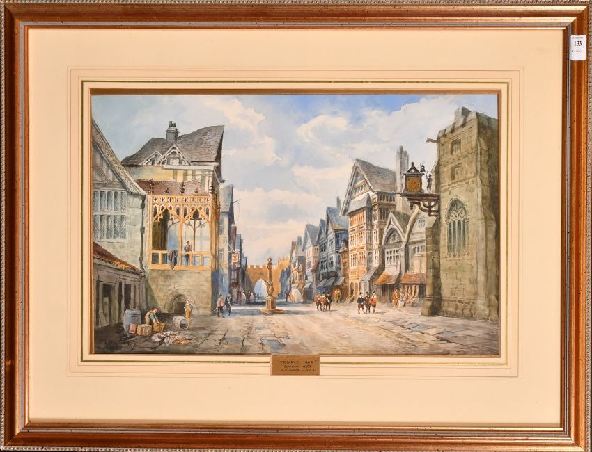 C. J. Keats (19th/20th Century), 'Temple Bar, London 1673', watercolour, signed, 12.75" x 19.75" (32.5 x 50cm).