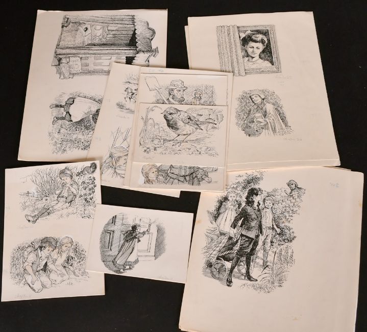 Eric Kincaid (1931-2023), a collection of black and white illustrations for 'The Secret Garden', mostly around 9" x 6" (23 x 15cm), (approximately 20).