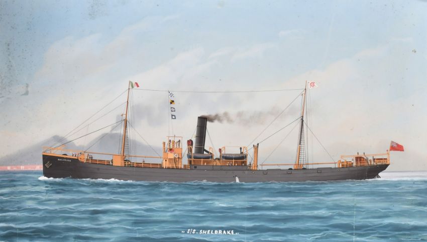 Attributed to G. Roberto (19th/20th Century), 'S.S. Sheldrake', in the bay of Naples, watercolour and gouache, 11.5" x 20" (29 x 51cm), unframed.