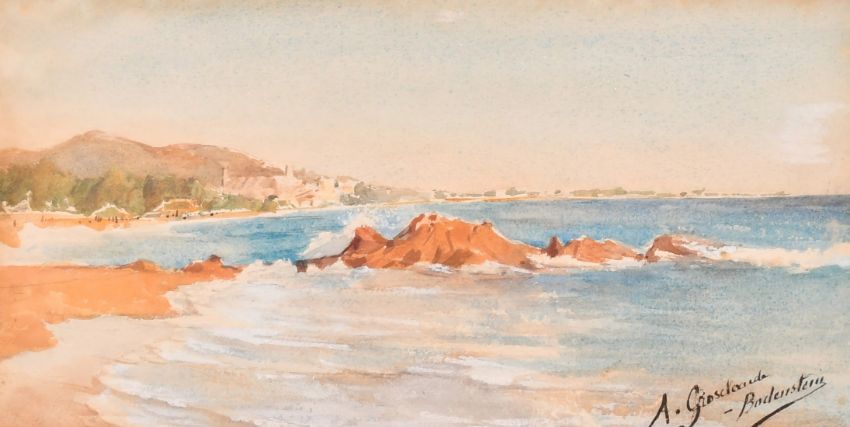 A. Grosclaude-Bodenstein (20th Century), a coastal view, 5.25" x 10.25" (13.5 x 26cm), along with another by the same hand of a study of trees, 15" x 10" (38 x 25.5cm), (2).