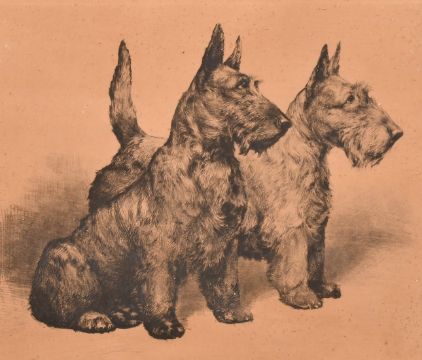 Two prints of cats each 9" x 12" (23 x 31cm), along with a print of two dogs by a different hand, (3).