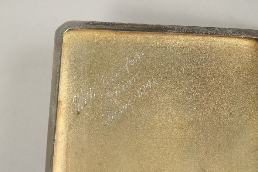 A SILVER ENGINE TURNED CIGARETTE CASE, Birmingham 1941, with an oval plaque of a dog.