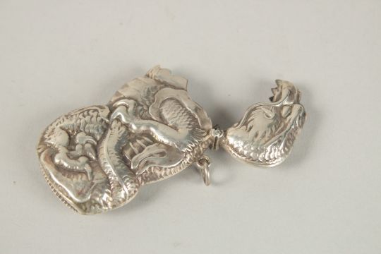 A SILVER DRAGON VESTA CASE.