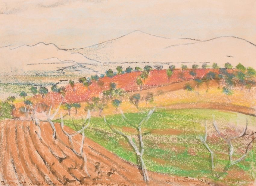 Rudolf Helmut Sauter (1895-1997) an alpine view over trees, pastel, signed dated 1957 and dedicated, 9" x 12" (23 x 301cm).