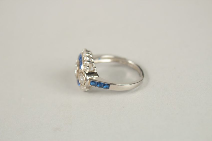 A SILVER FAUX SAPPHIRE AND CZ RING.