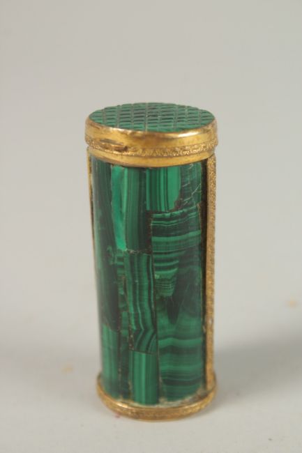 A GOOD SMALL MALACHITE DRUM AND COVER.