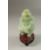 A FINE CARVED JADE LIDDED TWIN HANDLE KORO, on a fitted hardwood stand, with carved dragon and drop-ring handles, elevated on tripod legs, koro 15cm high.