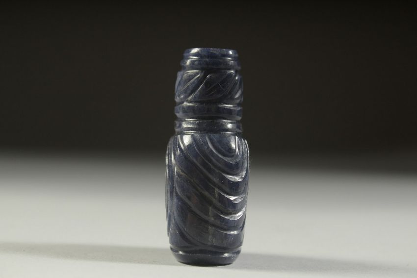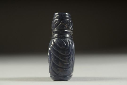 A RARE INDIAN CARVED SAPPHIRE PERFUME BOTTLE, high carat, 5cm high.
