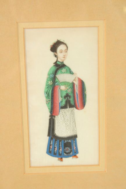 FOUR CHINESE FRAMED AND GLAZED PITH PAINTINGS, each depicting a figure in traditional attire, image 15.5cm x 8cm, (4).
