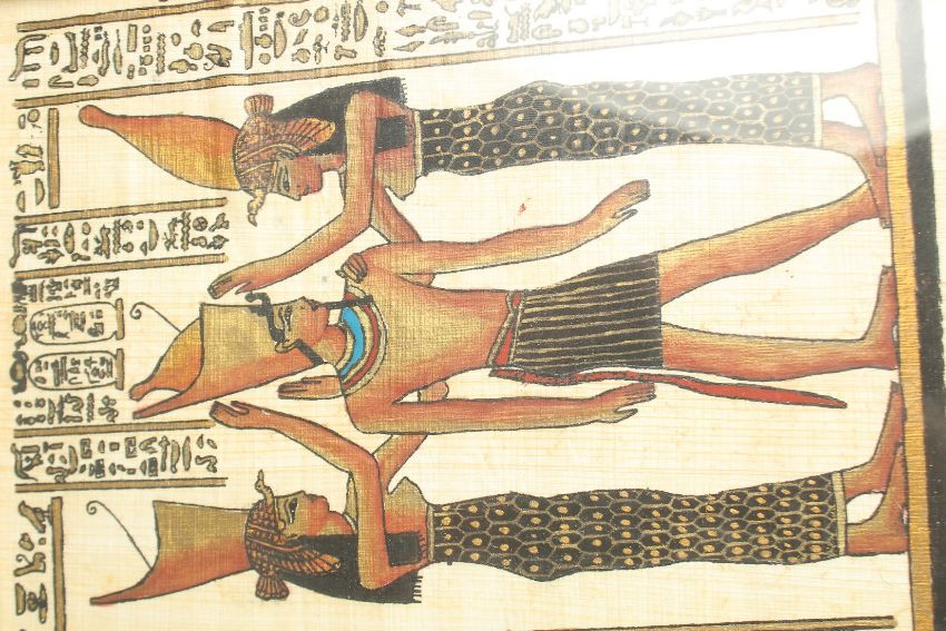 A LARGE COLLECTION OF FRAMED AND GLAZED EGYPTIAN PAINTINGS, various sizes, (qty).