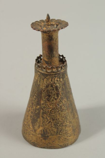 A VERY FINE POSSIBLY 16TH CENTURY OTTOMAN TURKISH GILT COPPER TOMBAK ELEMENT - POSSIBLY A CANDLESTICK OR TORCH HOLDER.