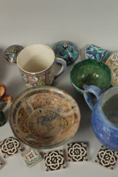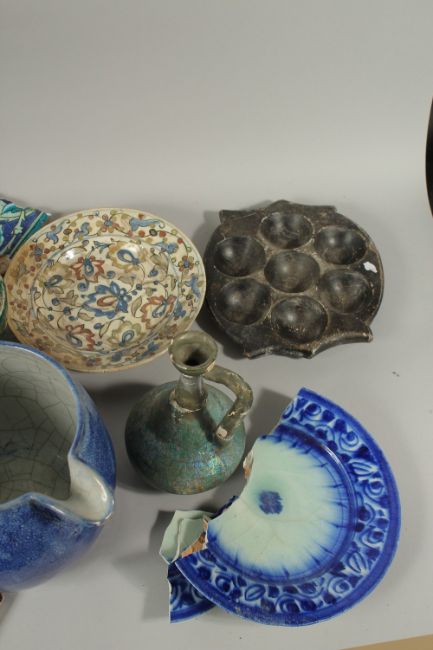 AN EXTENSIVE COLLECTION OF ISLAMIC CERAMIC PIECES, including bowls, dishes, jugs, tiles etc. (qty).