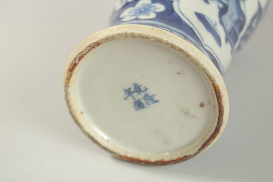 A CHINESE BLUE AND WHITE PORCELAIN JAR AND COVER, 31cm high.