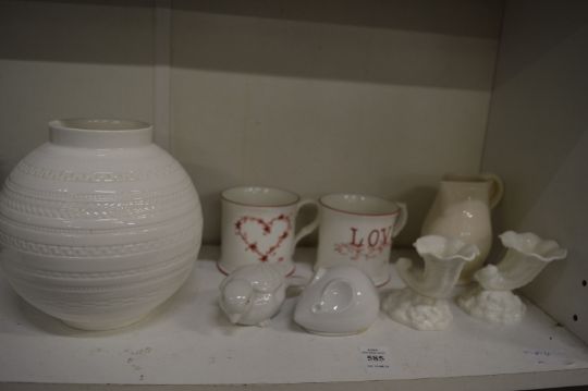 A pair of Royal Worcester miniature Cornucopia vases, a Wedgwood vase, two mugs and other decorative china.