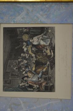 A pair of colour engravings after Hogarth, The Rakes Progress.