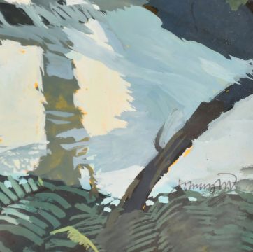 Circle of John Elwyn, 'Late Light', gouache, indistinctly signed, signed again and inscribed verso 'Cwm Tudn Cardigan', and dated 1987 on backing board, mount and frame a/f.