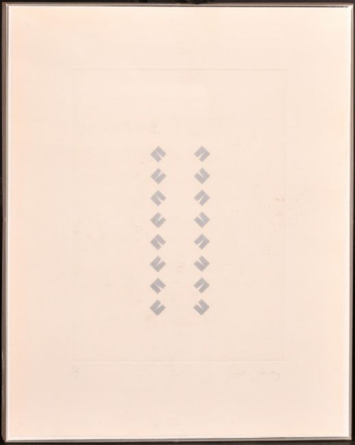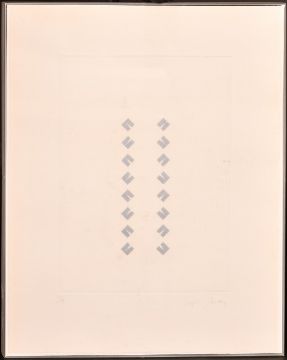 Tess Jaray (b. 1937), 'Constructions', a set of nine screenprints of geometric shapes, each signed in pencil and each numbered 2/9, print area 10.75" x 7.75" (27 x 19.5cm), overall 16" x 13" (41 x 33cm), along with a smaller screenprint by the same hand, all in moulded Perspex frames, (10).