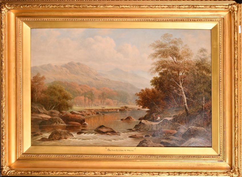 Daniel H. Winder (1870-1920), 'On the Lledr, N. Wales', anglers on a riverbank, oil on canvas, signed, 20" x 30" (51 x 76cm).