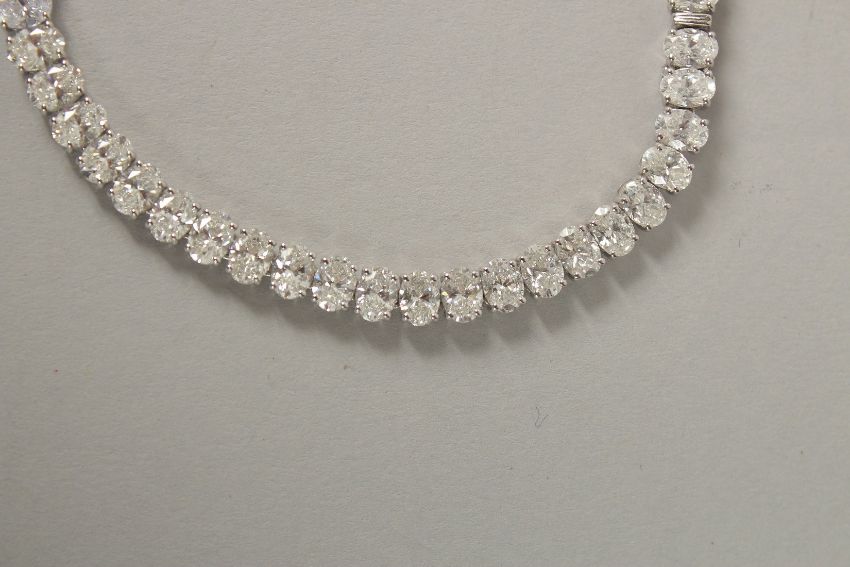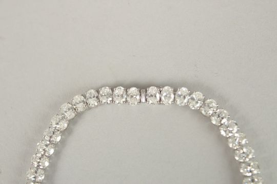 A SUPERB 18CT WHITE GOLD 12.51CT OVAL CUT DIAMOND LINE BRACELET.