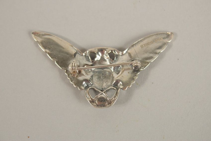 A SILVER SCARAB BROOCH.