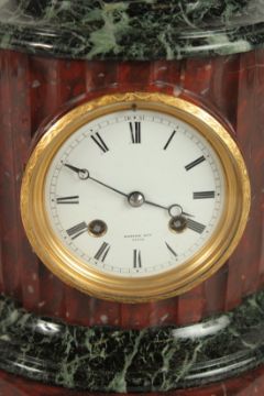 A GOOD 19TH CENTURY FRENCH BRONZE AND MARBLE CLOCK, the movement by RODIER, PARIS, surmounted by a bust of a young lady.