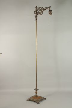 A BRONZE STANDING FLOOR LAMP.