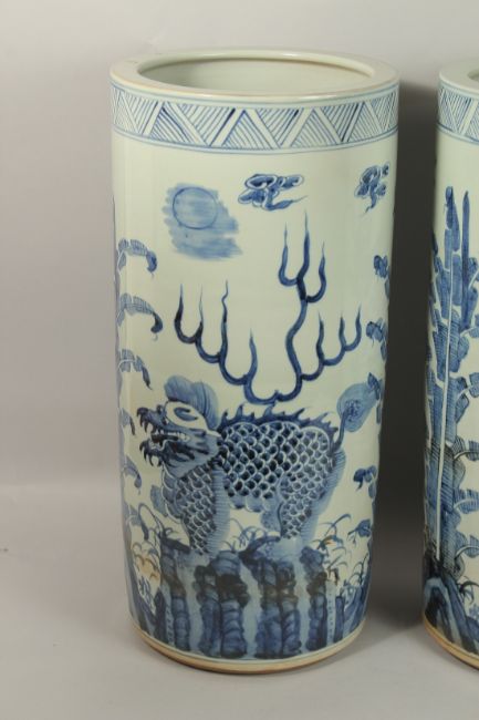 A PAIR OF CHINESE BLUE AND WHITE STICK STANDS.
