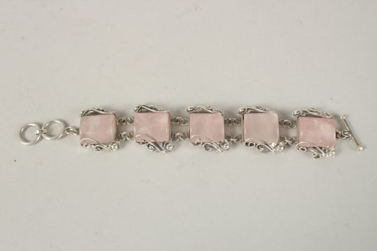 A CHUNKY SILVER ROSE QUARTZ BRACELET.