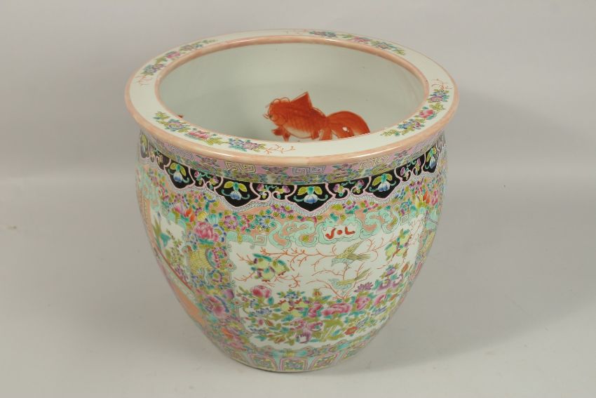 A LARGE CHINESE PORCELAIN CIRCULAR PLANTER, famille rose with panels.