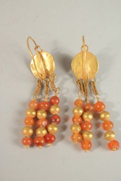 A PAIR OF 24CT GOLD DROP EARRINGS.