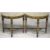 A GOOD PAIR OF 19TH/20TH CENTURY PAINTED AND PARCEL GILDED DEMILUNE CONSOLE TABLES, with needlework embroidered tops depicting birds and classical emblems, protected by a plate glass, ribbon and swag decorated frieze, with female caryatid supports united by shaped stretchers.