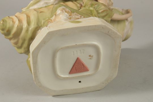 A ROYAL DUX PORCELAIN SHAPED BOWL held by a young lady.