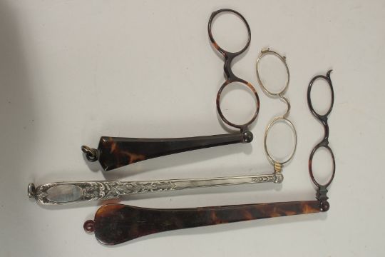 THREE HANDHELD LORGNETTES.