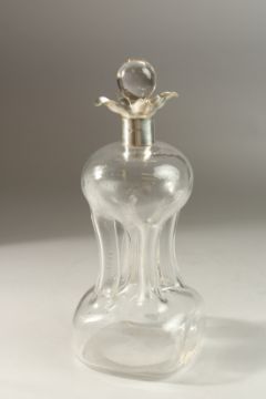 AN EDWARDIAN SILVER MOUNTED DECANTER AND STOPPER.