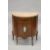 A HALF MOON SIDE CUPBOARD with marble top, panel door to the front with Wedgwood oval plaque.