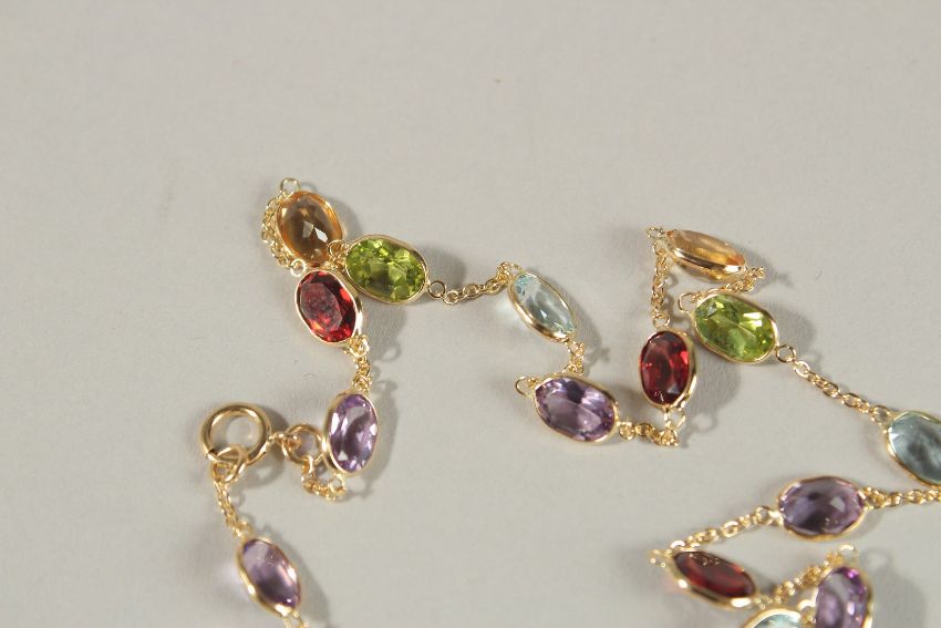 AN 18CT GOLD MULTI-GEM NECKLACE.