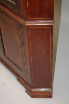 A GEORGE III MAHOGANY STANDING CORNER CABINET with a pendant moulded cornice, octagonal glazed door above a pair of panelled doors.