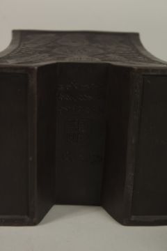 A LARGE CHINESE YIXING TEAPOT, with carved decoration, the base with character mark and inscription, 20cm high.