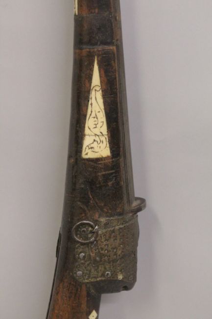 AN 18TH-19TH CENTURY OTTOMAN BONE INLAID MATCHLOCK RIFLE.