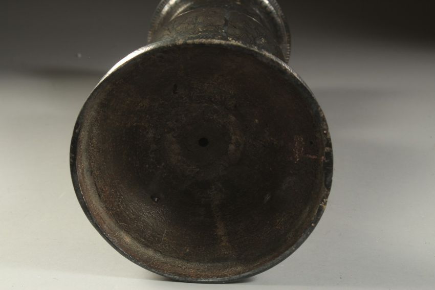 A VERY FINE AND LARGE 19TH CENTURY INDIAN BIDRI SILVER INLAID VASE, 33cm high.