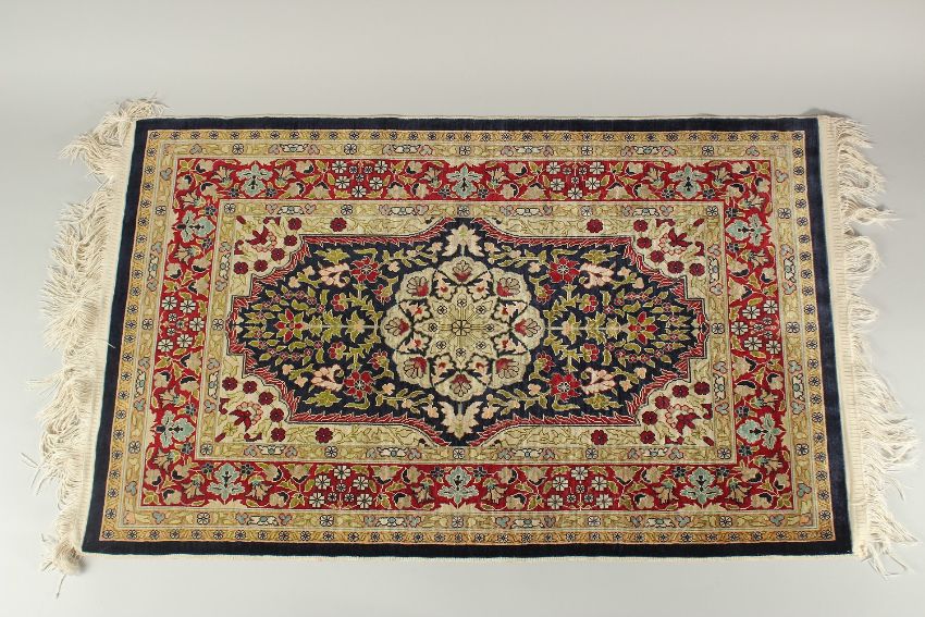 A FINE TURKISH HEREKE SILK RUG, 85cm x 53cm.