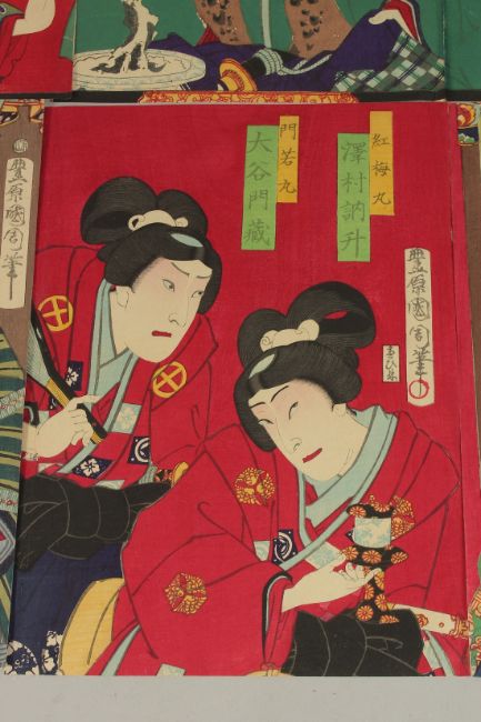 KUNICHIKA TOYOHARA (1835-1900): JAPANESE KABUKI THEATRE PLAY; two late 19th century original Japanese woodblock prints, (2).