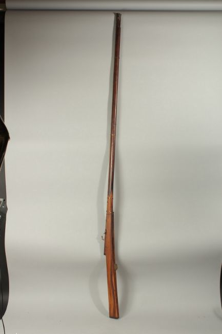 A LONG INDIAN MATCHLOCK RIFLE. 186cm long.