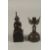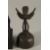 A BRONZE KNEELING BUDDHISTIC FIGURE ON WOODEN BASE, together with a bronze bell, (2).