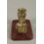 A CHINESE BRASS GROUP OF A MAN PAINTING A VASE, mounted to a rectangular red marble base, 13cm x 8cm at base.