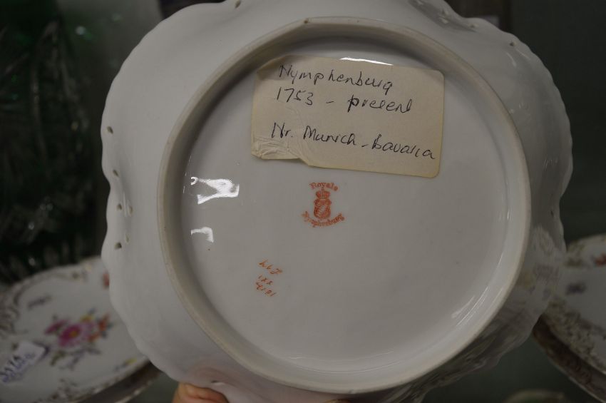 A set of four Royal Nymphenburg porcelain plates and a bowl painted with flowers.