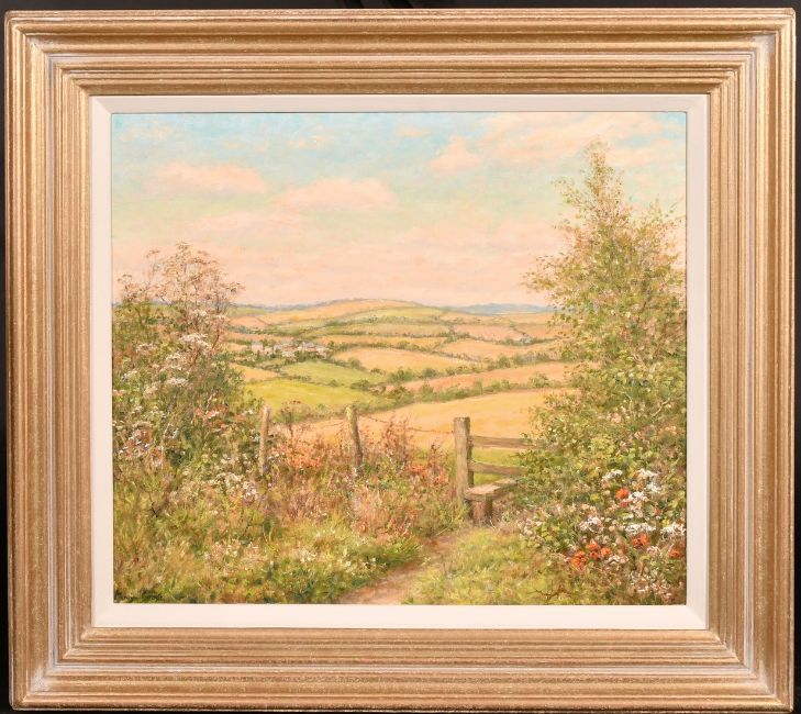 Mervyn Goode, 'Stile and Patchwork Fields, Midsummer', oil on canvas, 14" x 16" (36 x 40cm).