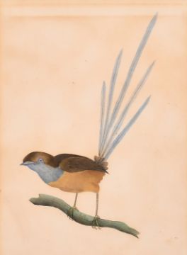 19th Century English School, a study of a Silver Stripe Hawk Moth, watercolour, 7" x 5" (18 x 13cm), along with a drawing of a Blue Throated Southern Emu-Wren, after Charles Hamilton Smith, watercolour, 6.5" x 5" (16 x 12.5cm), (2).