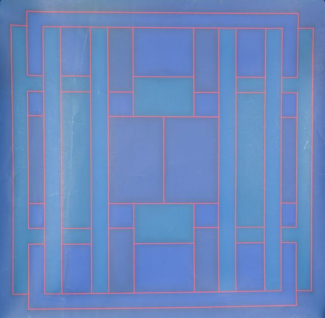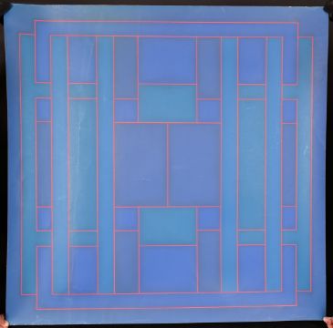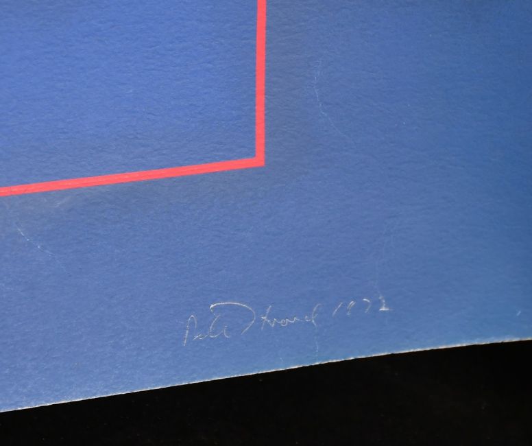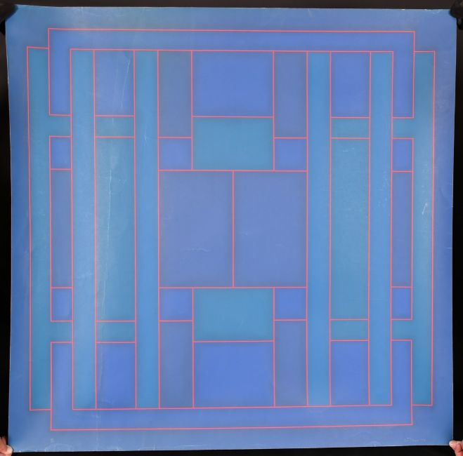 Peter Stroud (1921-2012), 'Large Blue Crossover', screenprint, signed in pencil and dated 1972, numbered 51/100, 43.5" x 43.5" (110 x 110cm), unframed, rolled, a/f.