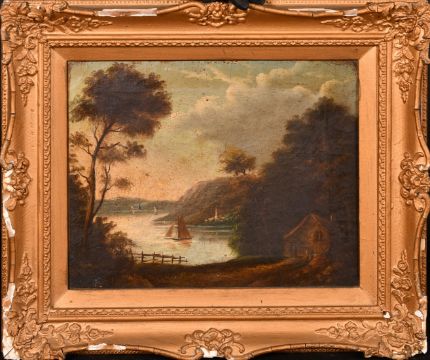 Early 19th Century English School, a pair of lakeside landscape views, oil on canvas, each 12" x 14" (31 x 36cm).